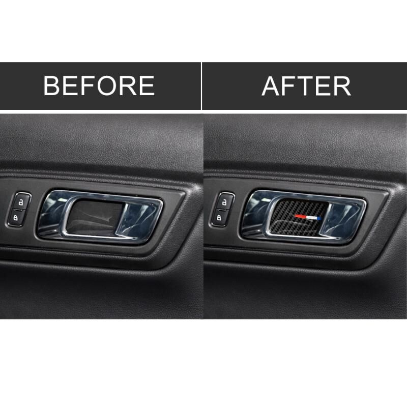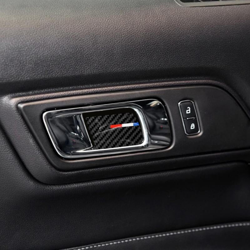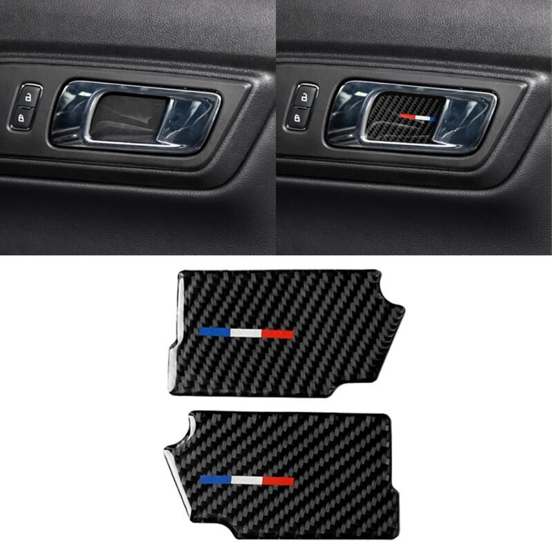 2 Τεμ. Αυτοκίνητο ΗΠΑ Χρώμα Ανθρακονήματος Εσωτερική Λαβή Πόρτας, Διακοσμητικό Αυτοκόλλητο για Ford Mustang 2015-2017
