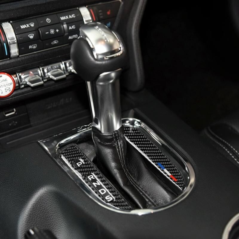 2 Τεμ. Αυτοκίνητο ΗΠΑ Χρώμα Διακοσμητικό Αυτοκόλλητο Πανοραμικής Κονσόλας Ταχυτήτων από Ανθρακονήματα για Ford Mustang 2015-2017, Αριστεροτίμονη Οδήγηση
