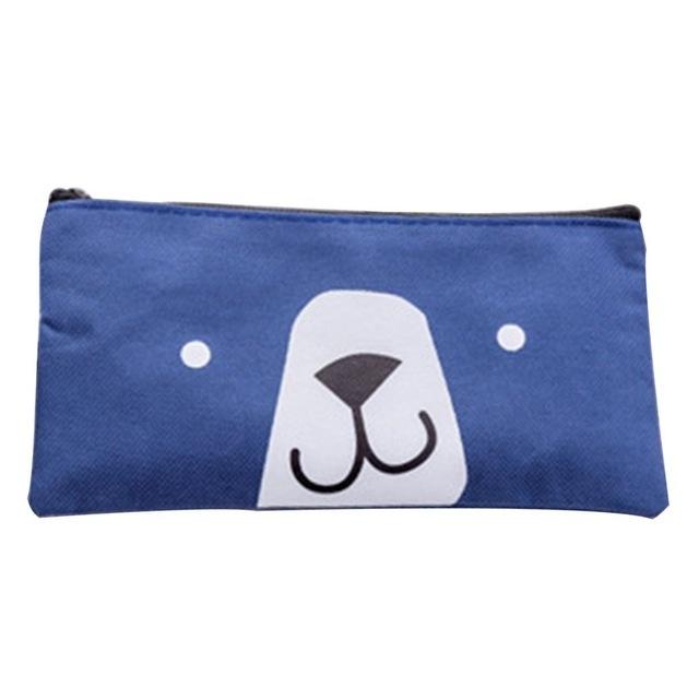 2 PCS Cartoon Dog Simple Big Capacity Pencil Bag Office School Student Supplie Stationery(Blue)