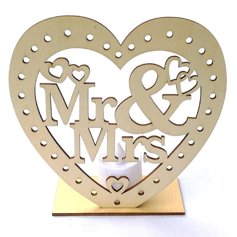 2 PCS Δημιουργική ξύλινη διακόσμηση σε σχήμα καρδιάς Ρομαντικό ξύλινο σημάδι LED κερί φως (JM01454)