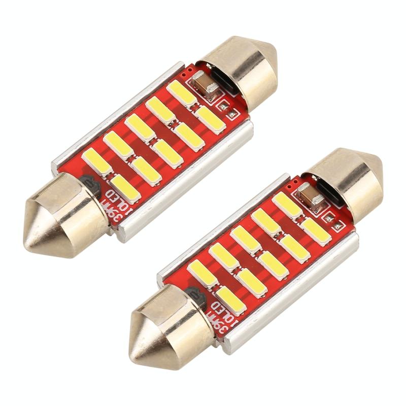 2 PCS DC 12V 2W 31MM 4014 Bicuspid Port No Decoding Car Dome Lamp LED Reading Light with 10 LED Lights(White Light)