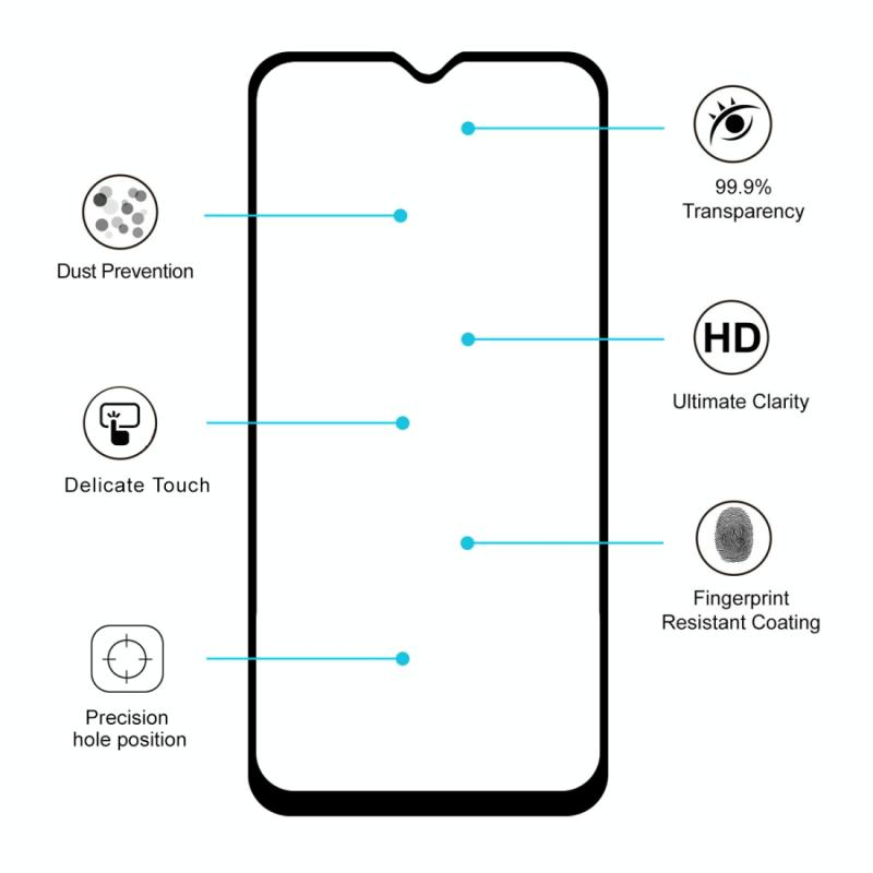 2. High hardness. This tempered glass screen film has a high hardness, so it can prevent itself from being scratched or broken into pieces effectively and continually. If broken, the tempered glass will break into small pieces that are not sharp, making it safer for users.