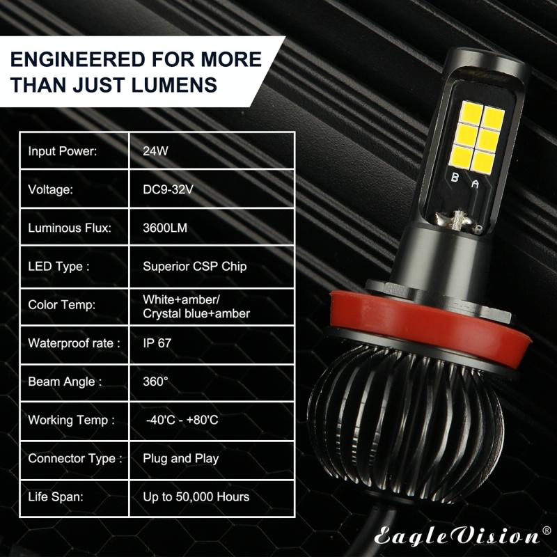 2 PCS EV15 H8 / H11 DC9-32V / 6W / IP67 Car LED Double Color Fog Light, Cold White Light + Amber Light