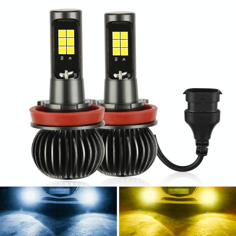 2 PCS EV15 H8 / H11 DC9-32V / 6W / IP67 Car LED Double Color Fog Light, Cold White Light + Amber Light
