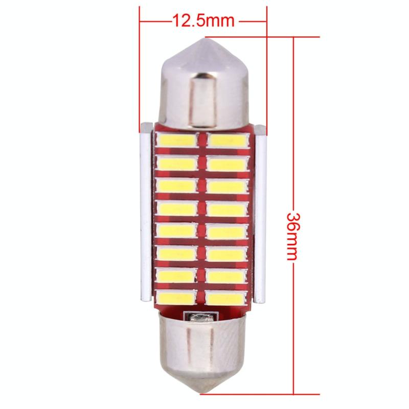 2 PCS Festoon 36mm 2W 160LM White Light 16 LED SMD 4014 Error Free License Plate Lights Car Light Bulb