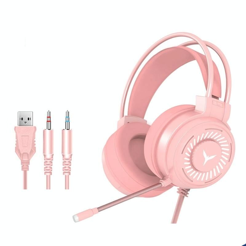 2 PCS G58 Head-Mounted Gaming Wired Headset with Microphone, Cable Length: about 2m, Color:Pink Colorful 3.5mm Version