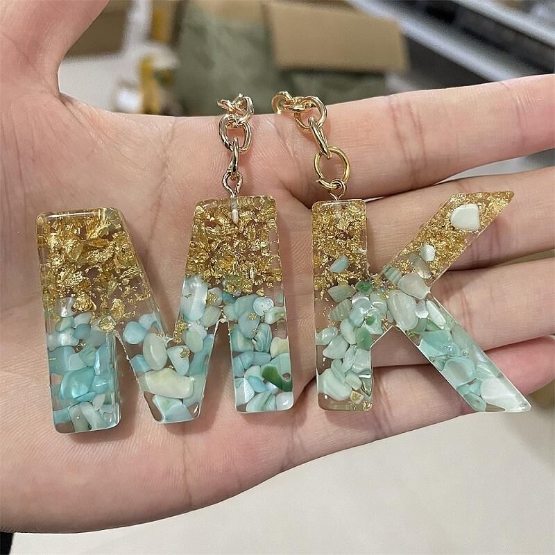 2 PCS χρυσό φύλλο αλουμινίου εποξειδική αγγλική επιστολή μπρελόκ τσάντα κρεμαστό κόσμημα (J)