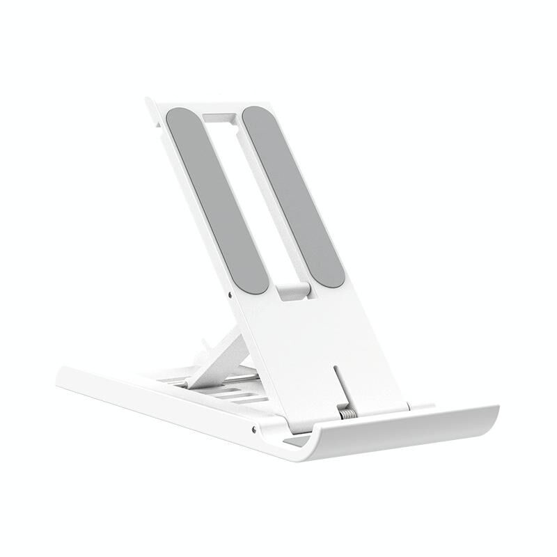 1. Μια βάση είναι βάση για κινητό τηλέφωνο και δύο βάσεις μπορούν να χρησιμοποιηθούν ως βάση για φορητό υπολογιστή, είναι μίνι, ελαφριά και δεν καταλαμβάνει χώρο. 2. Διπλώνεται και είναι φορητή, ελευθερώνοντας τα χέρια. 3. Ρυθμιζόμενη γωνία σε 6 θέσεις, βοηθά στην ανακούφιση από την κόπωση του αυχένα και της πλάτης. 4. Τριγωνική κατασκευή, σταθερή και δεν ανατρέπεται ή κουνιέται. 5. Η επιφάνεια επαφής είναι εξοπλισμένη με αντιολισθητικό μαξιλαράκι σιλικόνης, το οποίο είναι αντιολισθητικό και ανθεκτικό στις γρατζουνιές για την προστασία του τηλεφώνου. 6. Κοίλος σχεδιασμός για αποβολή θερμότητας, αυξάνοντας την κυκλοφορία του αέρα. 7. Υλικό: ABS+PC 8. Διαστάσεις: 120 x 50 x 7mm 9. Κατάλληλο για μοντέλα οθόνης κάτω των 12 ιντσών.