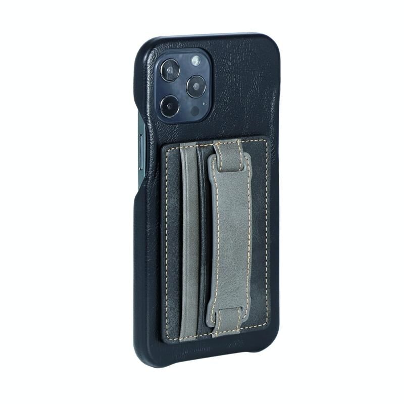 2 ΤΕΜ. Δερμάτινη Θήκη Κάρτας Τηλεφώνου, Αυτοκόλλητο Πλάτης με Λουρί για Κράτημα από το Χέρι (Μαύρο)