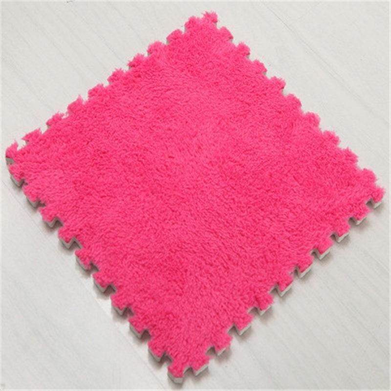 2 PCS Living Room Bedroom Children Kids Soft Carpet Magic Patchwork Jigsaw Splice Heads Climbing Baby Mat 30x30cm(Rose Red)