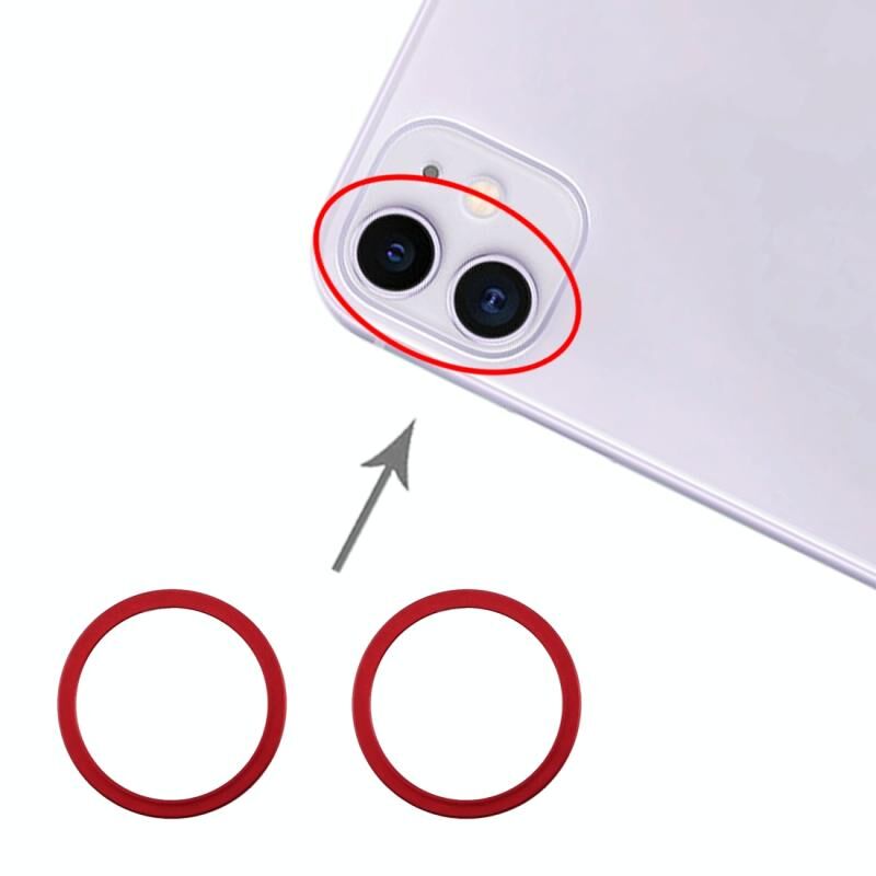 2 PCS Rear Camera Glass Lens Metal Protector Hoop Ring for iPhone 11(Red)