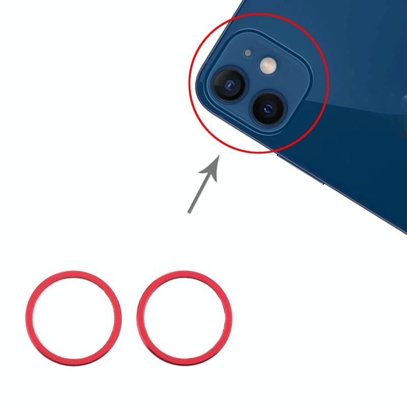 2 PCS Rear Camera Glass Lens Metal Protector Hoop Ring for iPhone 12 Mini(Red)