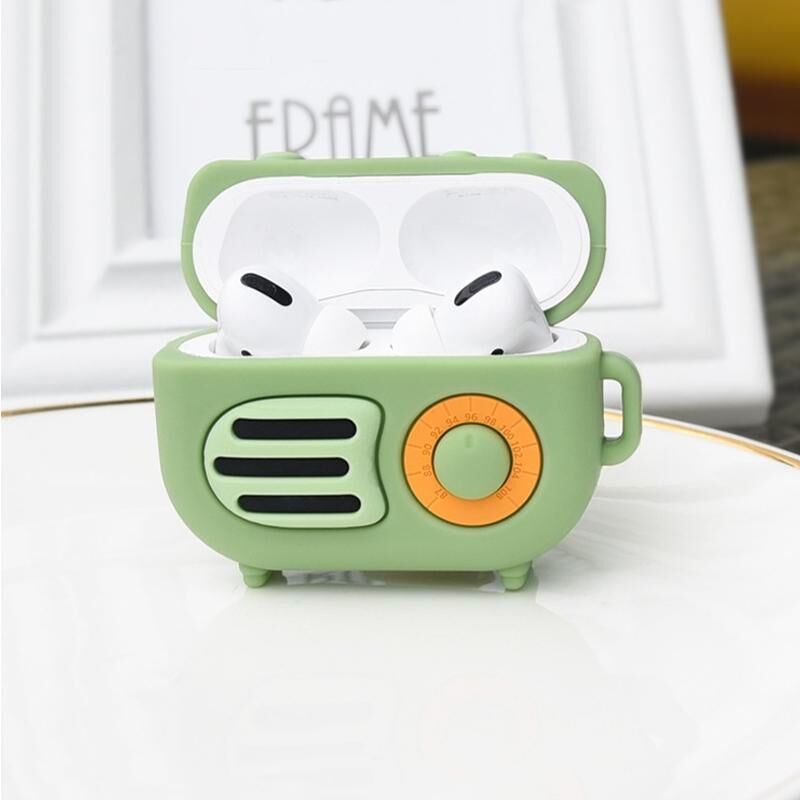 2 ΤΕΜ. Προστατευτικό Κάλυμμα σε Σχήμα Ρετρό Ραδιοφώνου από Σιλικόνη για AirPods Pro, Χρώμα: Πράσινο