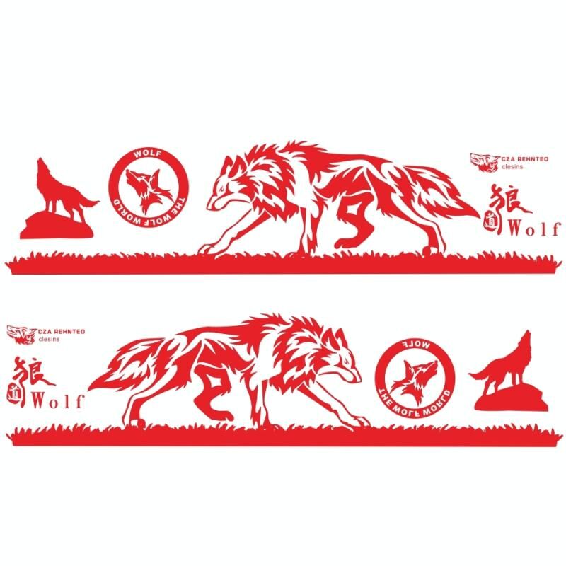 2 PCS/Set D-180 Wolf Totem Pattern Car Modified Decorative Sticker(Red)