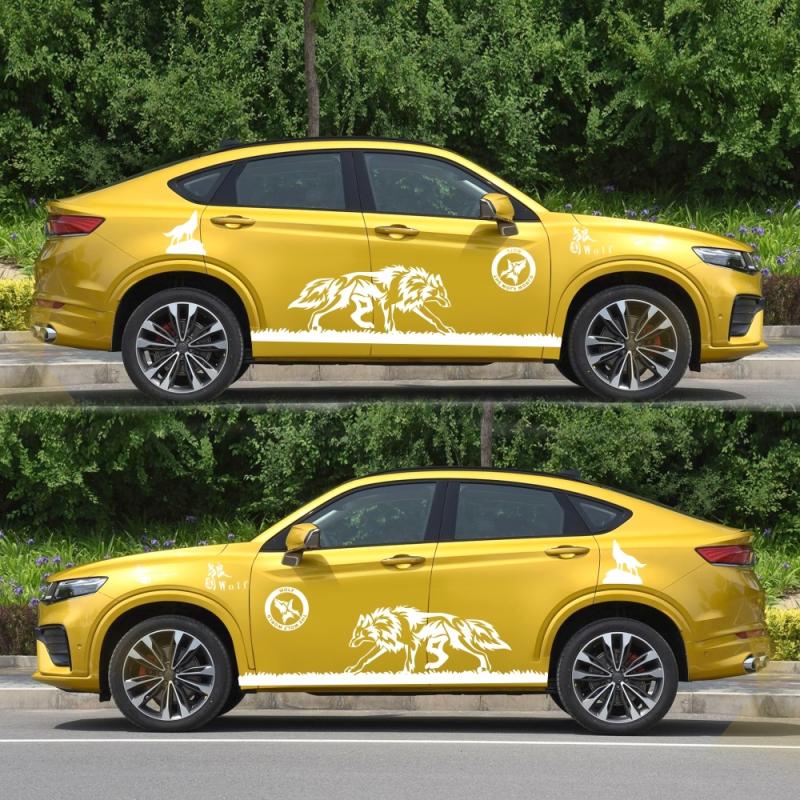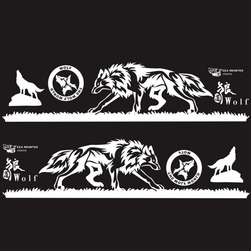 2 PCS/Set D-180 Wolf Totem Pattern Car Modified Decorative Sticker(White)