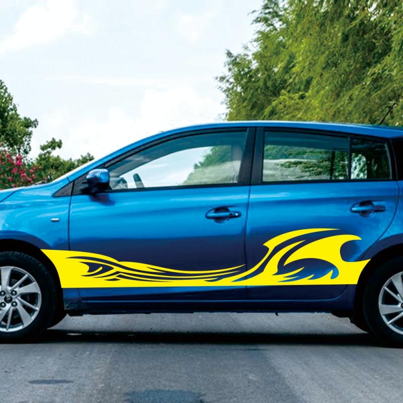 2 ΤΕΜ. / Σετ D-467 Αυτοκόλλητο Διακοσμητικό για Αυτοκίνητο με Σχέδιο Κυμάτων (Κίτρινο)