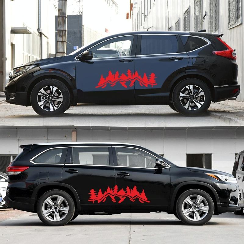 2 Τεμ. D-924 Διακοσμητικό Αυτοκόλλητο Αυτοκινήτου με Μοτίβο Δάσους Βουνού (Κόκκινο)