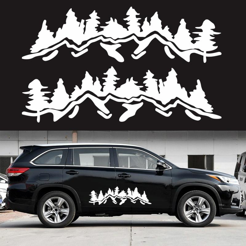 2 Τεμ. D-924 Διακοσμητικό Αυτοκόλλητο Αυτοκινήτου με Μοτίβο Δάσους Βουνού (Λευκό)