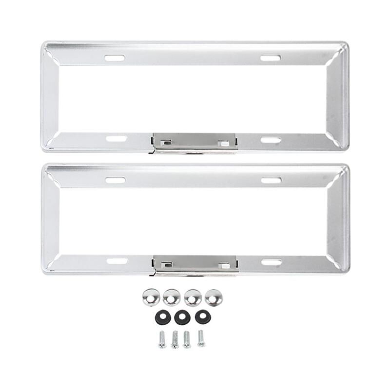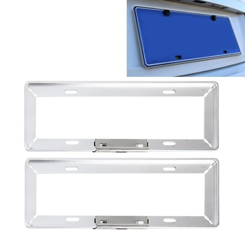 2 PCS Simple and Beautiful Car License Plate Frame Holder Universal License Plate Holder Car Accessories(Silver)
