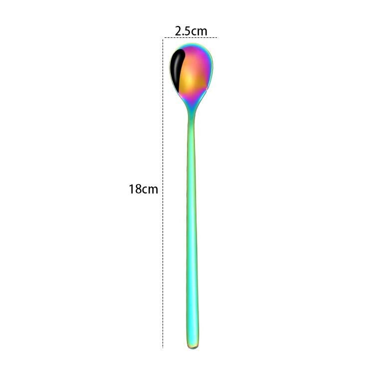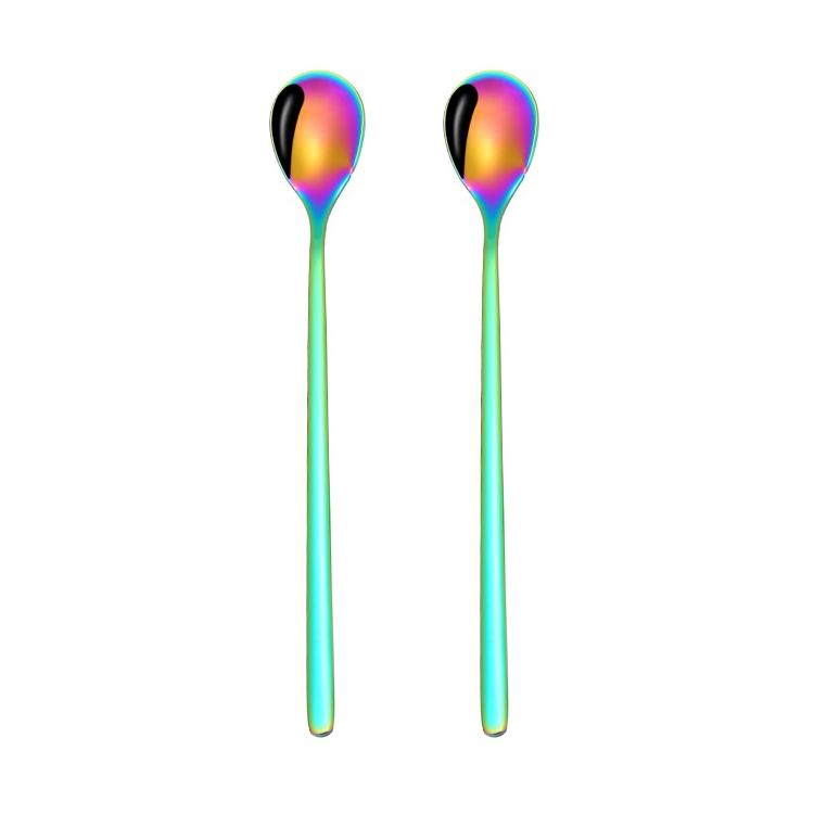 2 PCS Stainless Steel Spoon Creative Coffee Spoon Bar Ice Spoon Gold Plated Long Stirring Spoon, Style:Round Spoon, Color:Colorful