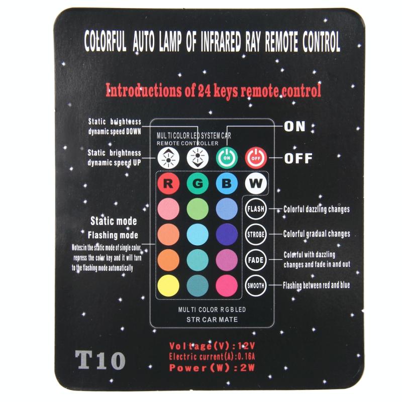 2 PCS T10 2W Auto Flash Strobe Fade Smooth Remote Controlled Colorful LED Clearance Decorative Light, DC 12V