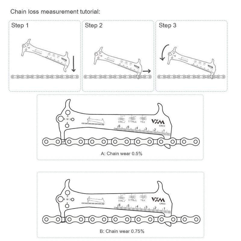 3. Χρήσεις: μέτρηση φθοράς αλυσίδας, μέτρηση μήκους, μέτρηση διαμέτρου βίδας, λειτουργία γάντζου για επισκευή αλυσίδας