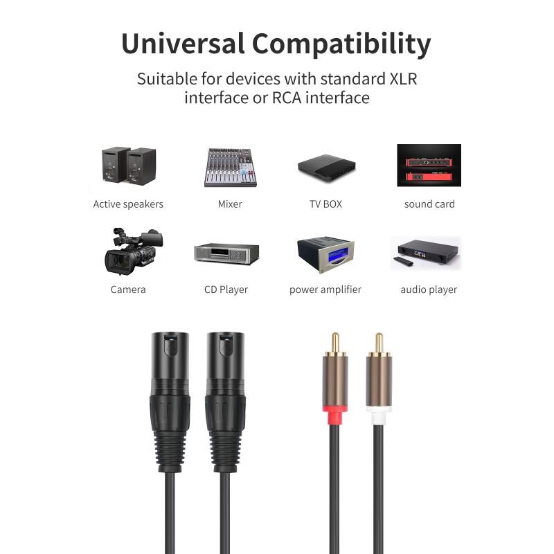 1. This cable can convert the unbalanced RCA output interface of the device to the XLR input interface, which is very suitable for interface conversion of mixers, audio players, audio decoders, power amplifiers, active speakers and other devices. For example, this cable can be used to convert the RCA interface of the audio player to the XLR MALE interface and connect it to the XLR input interface of the power amplifier.