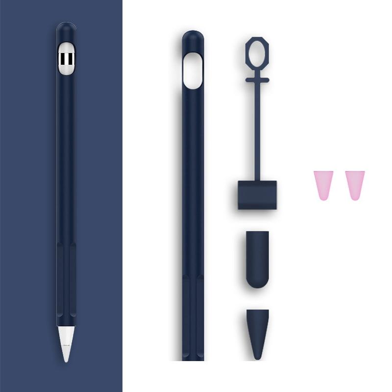 2 Sets 4 In 1 Stylus Silicone Protective Cover + Anti-Lost Rope + Double Pen Nip Cover Set For Apple Pencil 1(Midnight Blue)