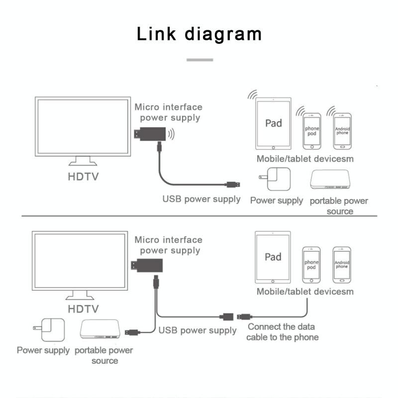 3. Μπορείτε να χρησιμοποιήσετε WiFi ή το παρεχόμενο καλώδιο για να συγχρονίσετε τις Εφαρμογές, το PPT, το Web, τις εικόνες και άλλα από το τηλέφωνό σας στην οθόνη με θύρα εισόδου HDMI, όπως τηλεόραση, οθόνη, προβολέα, σε μορφή 1080P HD