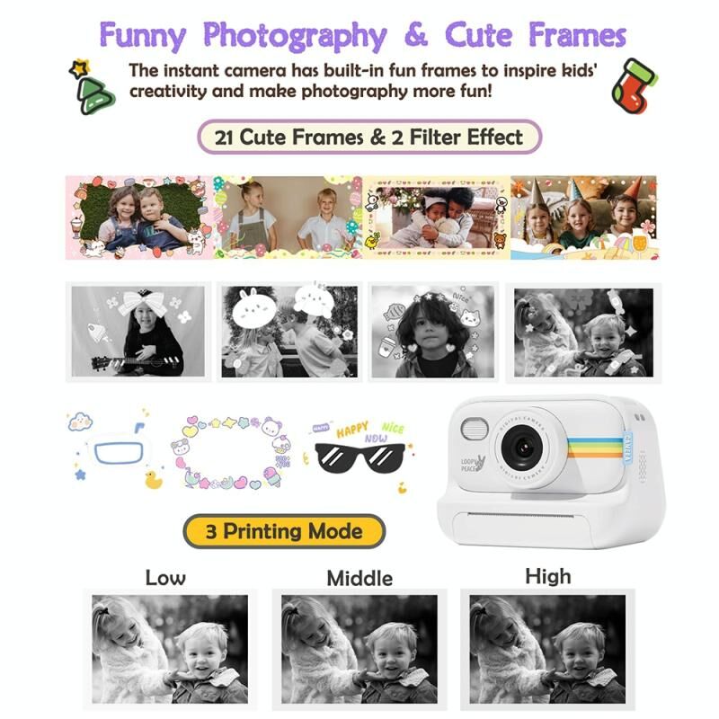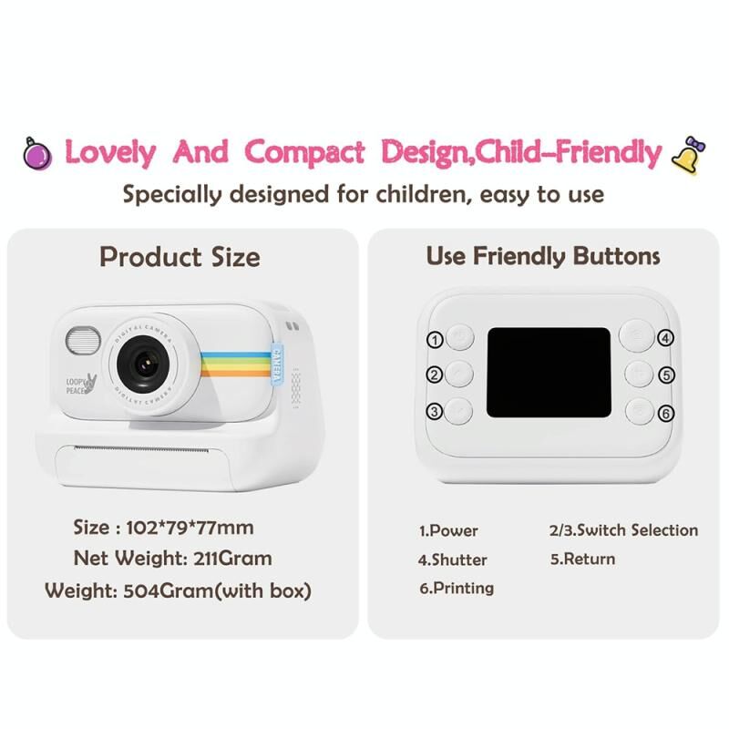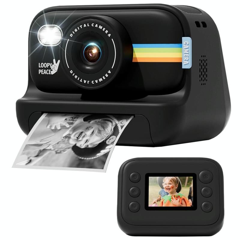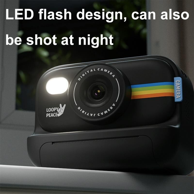 2.0-ιντσών LED Flash 1080P HD εγγραφής φωτογραφιών εκτύπωσης φωτογραφικής μηχανής με 3 ρολά χαρτιού, χρώμα: Μαύρο