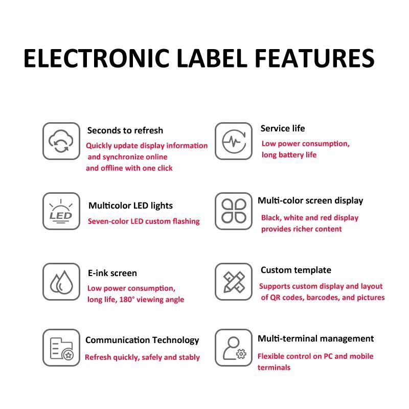 1. Multi-functional electronic labels replace traditional paper labels, can be recycled, synchronized in real time, and are highly efficient.