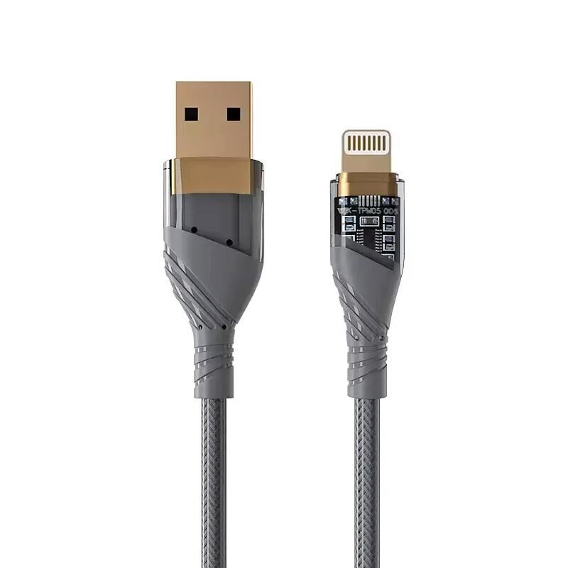 2.4A USB to 8 Pin Transparent Fast Charging Data Cable, Length: 1m(Grey)
