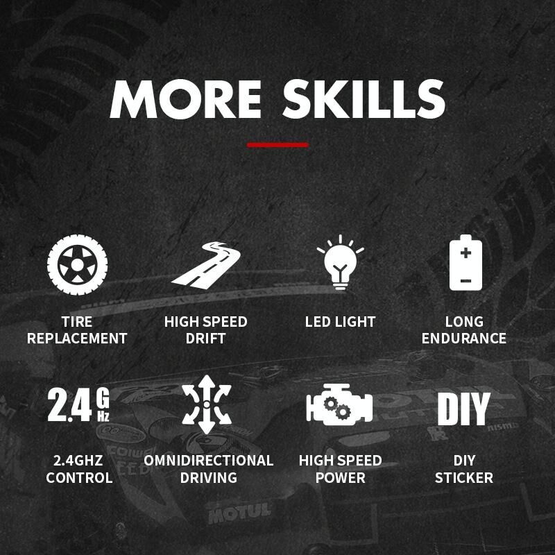 10. With 2.4G remote control system, speed 25KM/H, extreme speed drift, four-wheel drive.