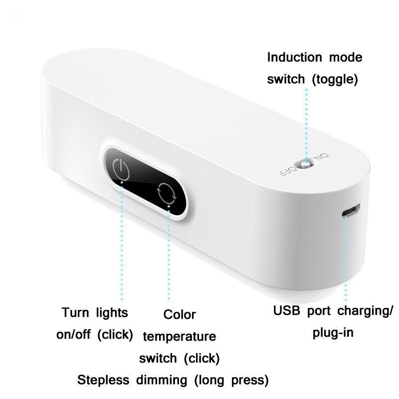 12. Human body induction charging model: stepless dimming, 5 levels of color temperature, USB power, rechargeable battery, double-sided magnetic absorption, human body induction