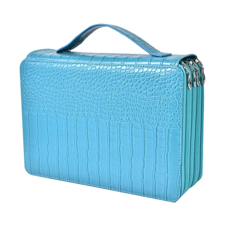 200 Hole Art Painting Pen Storage Bag Large-Capacity Crocodile Pattern PU Pencil Bag(Lake Blue)