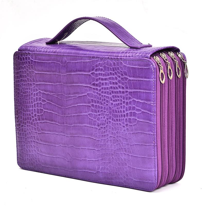200 Hole Art Painting Pen Storage Bag Large-Capacity Crocodile Pattern PU Pencil Bag(Purple)