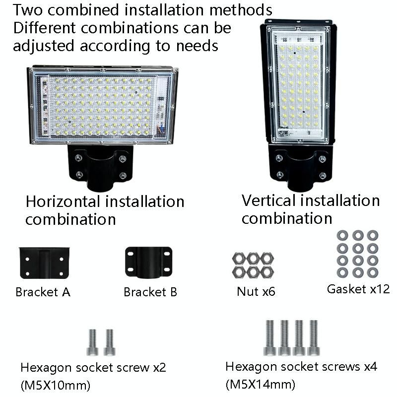 9. Λίστα συσκευασίας: λαμπτήρας x1, βραχίονας x2, παξιμάδι x6, ροδέλα x12, βίδα με εσωτερικό εξαγωνικό κεφάλι (M5X10mm) x2, βίδα με εσωτερικό εξαγωνικό κεφάλι (M5X14mm) x4