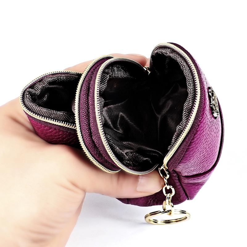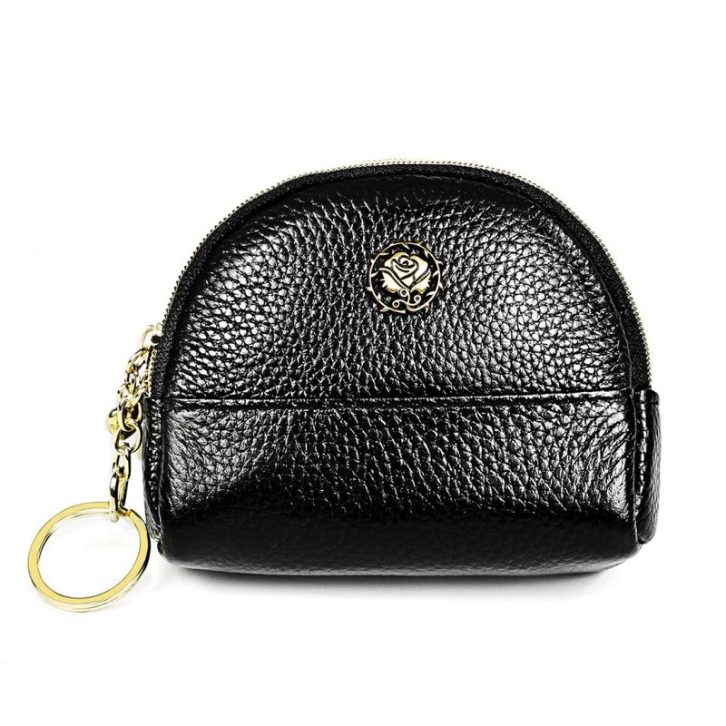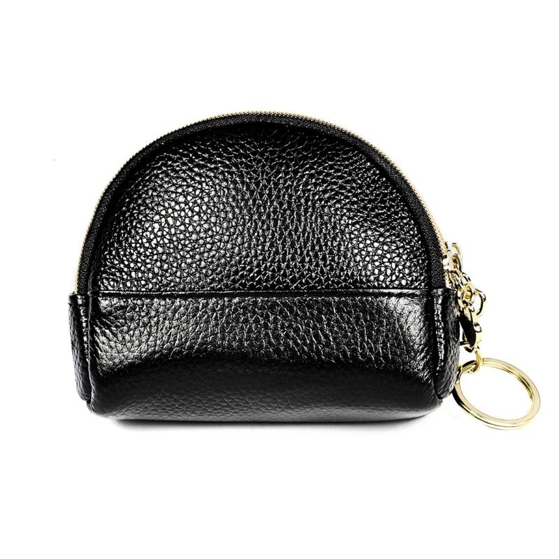 2027 Lady Leather Zipper Wallet Purse Double-pocket Little Shell Bag(Black)
