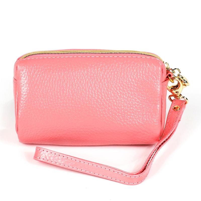2033 Lady Portable Zipper Leather Wallet Purse Small Cosmetic Bag with Lanyard(Pink)