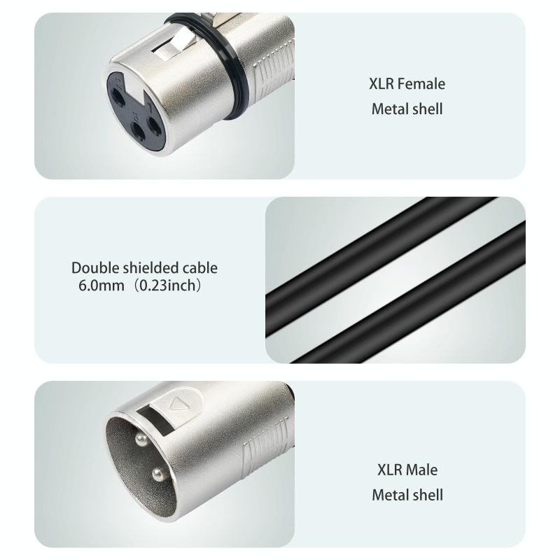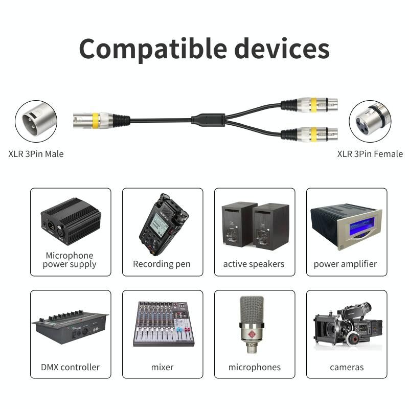 5. Usage: XLR 3-pin interfaces such as amplifiers, microphones, and mixing consoles can be split into two. When the input port of the mixing station is not sufficient, two microphones can be connected to the XLR female head and the XLR male head to the input port of the mixing station.