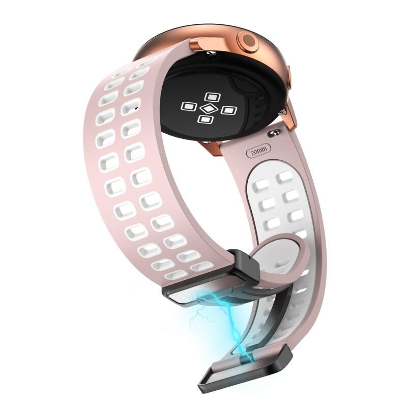 20 χιλιοστά διπλής σειράς τρύπα πτυσσόμενο μαύρο πόρπη δύο χρωμάτων σιλικόνης ρολόι μπάντα (ροζ λευκό)