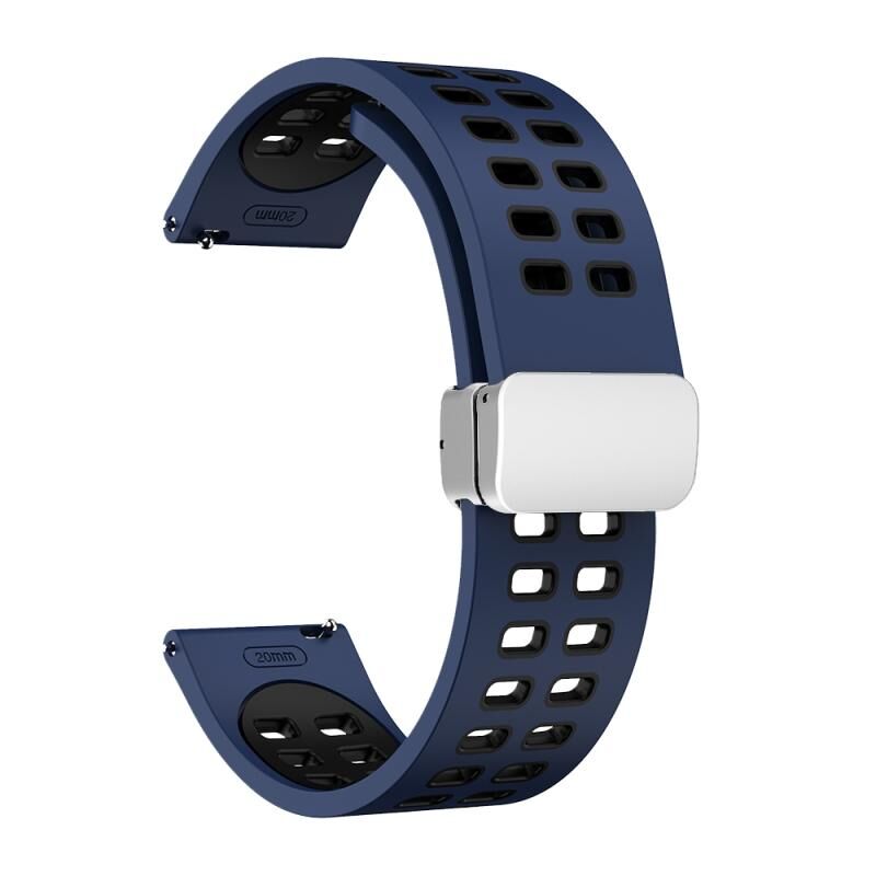 20 χιλιοστά διπλής σειράς τρύπα Πτυσσόμενη ασημένια πόρπη δύο χρωμάτων σιλικόνης ρολόι μπάντα (μεσάνυχτα μπλε μαύρο)
