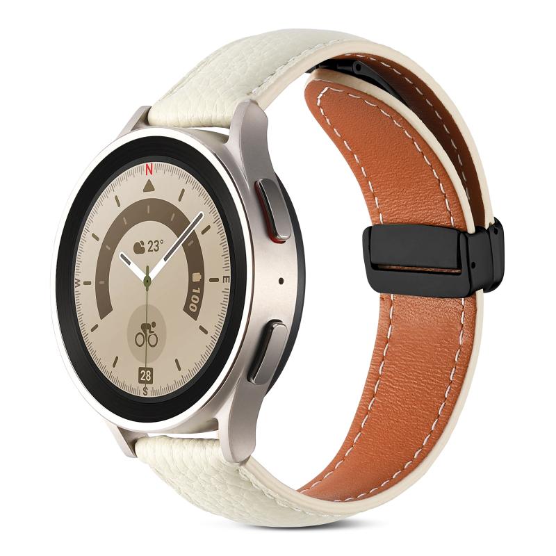 Λουρί ρολογιού από γνήσιο δέρμα με αναδιπλούμενη αγκράφα 20mm (Μπεζ-Λευκό)