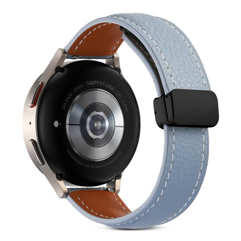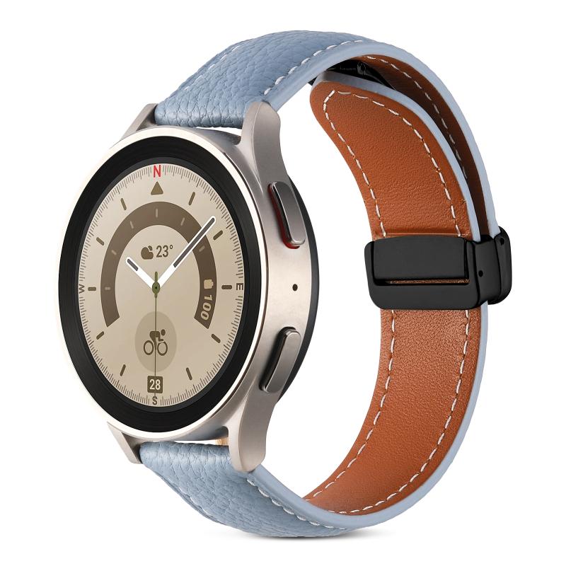Λουρί ρολογιού από γνήσιο δέρμα με αναδιπλούμενη αγκράφα 20mm (Μπλε)