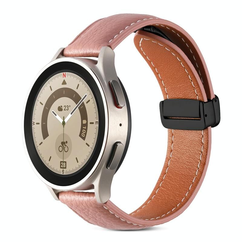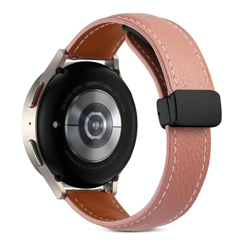 Λουρί ρολογιού από γνήσιο δέρμα με αναδιπλούμενη αγκράφα 20mm (Σκούρο ροζ)