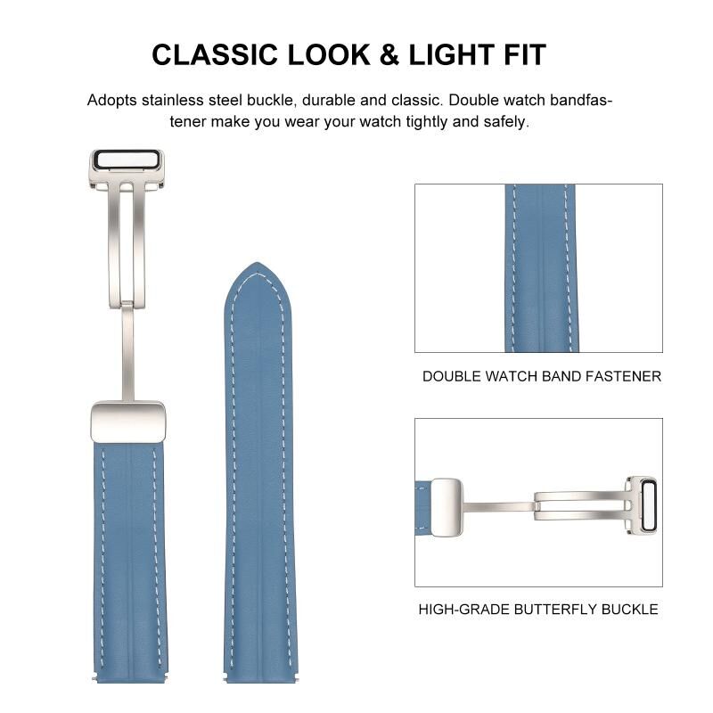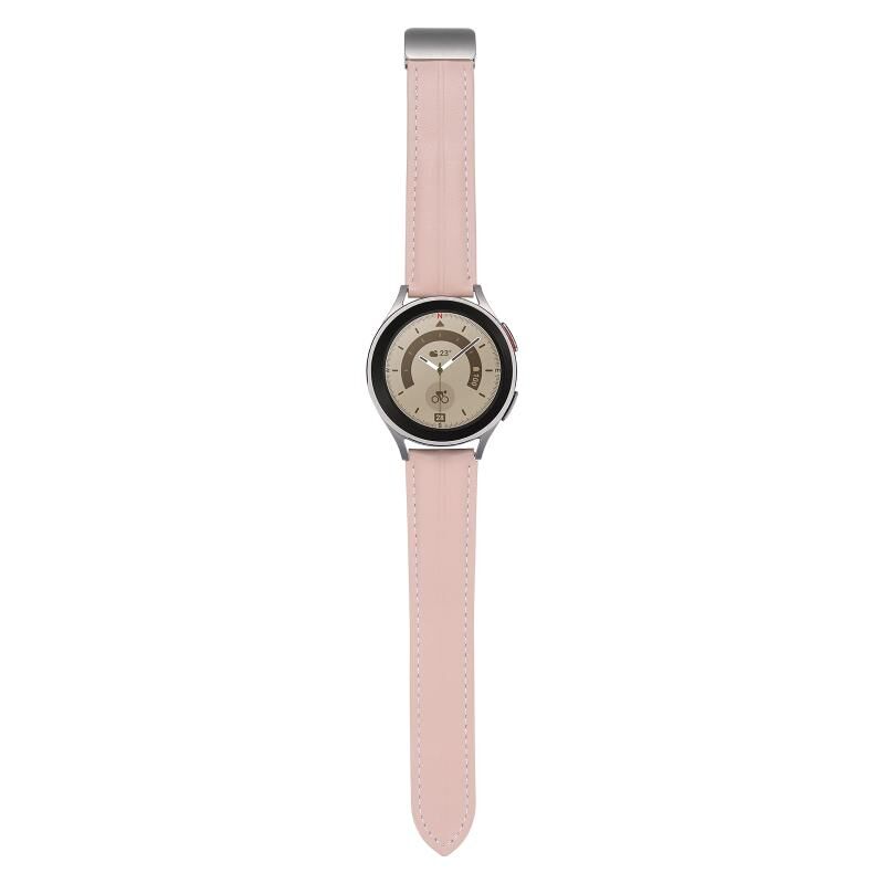20mm Folding Buckle Grooved Genuine Leather Watch Band, Silver Buckle(Light Pink)