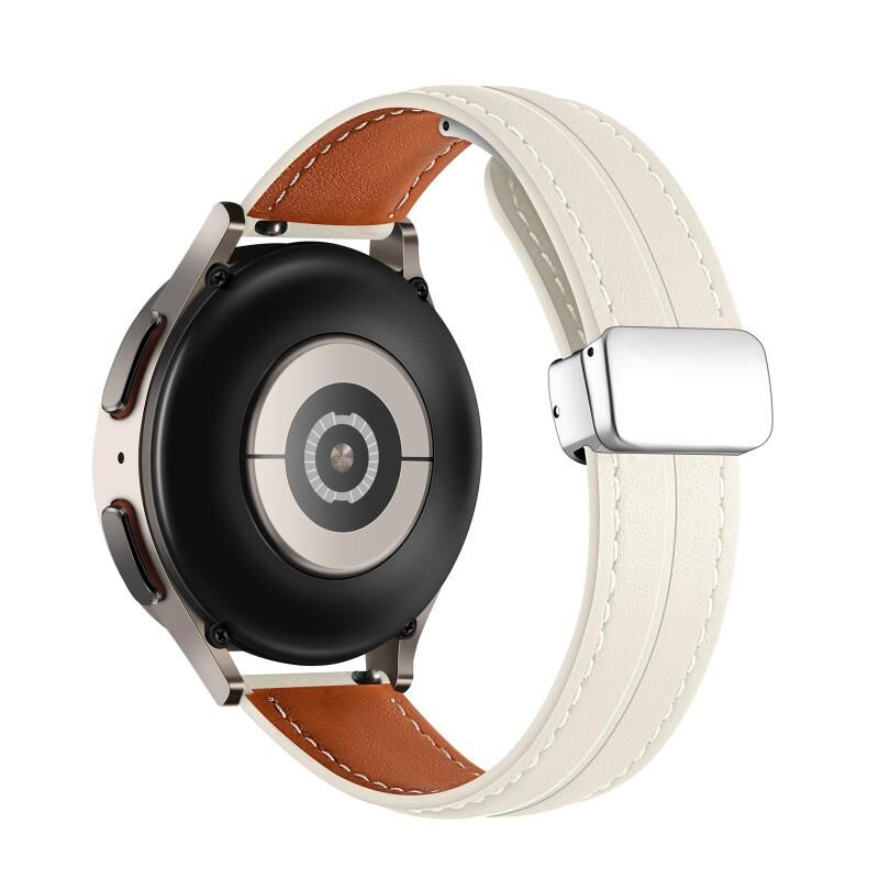 20mm Folding Buckle Grooved Genuine Leather Watch Band, Silver Buckle(Off White)