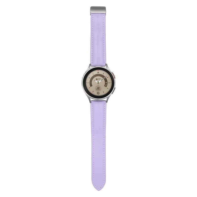 20mm Folding Buckle Grooved Genuine Leather Watch Band, Silver Buckle(Purple)
