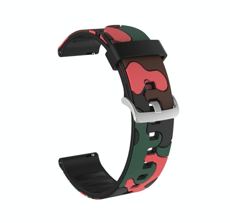 Λουράκι ρολογιού σιλικόνης 20mm για Fossil Hybrid Smartwatch HR Καμουφλάζ με ασημένια αγκράφα (1)