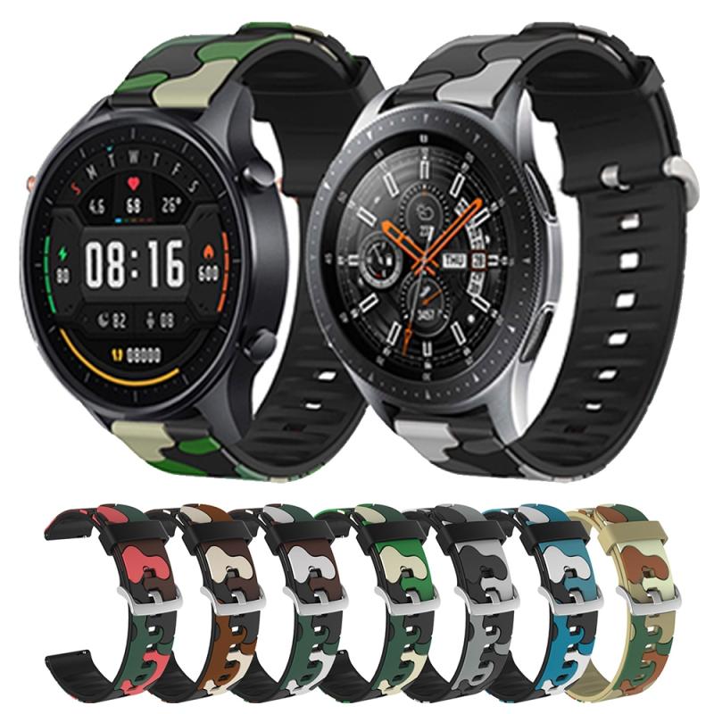 Λουράκι ρολογιού σιλικόνης 20mm για Fossil Hybrid Smartwatch HR Καμουφλάζ με ασημένια αγκράφα (4)